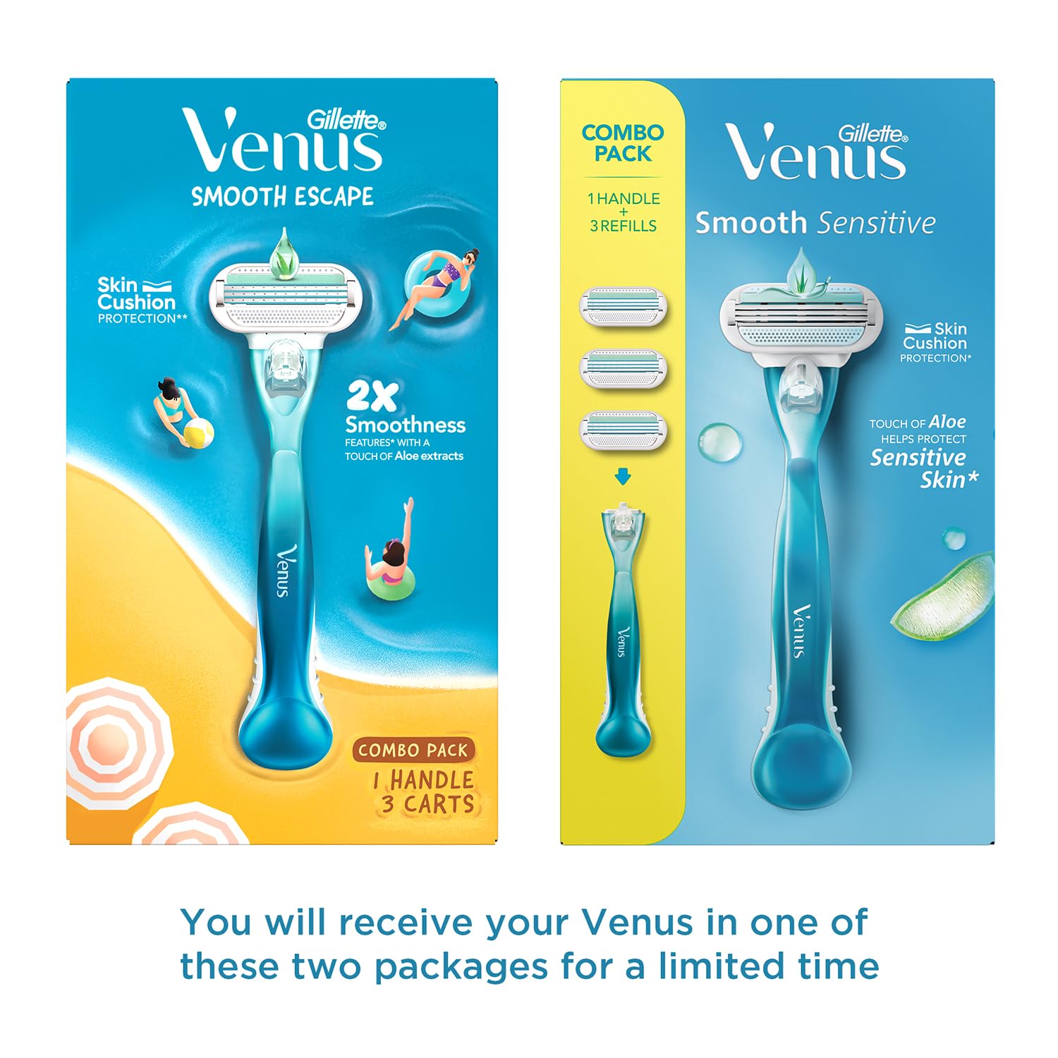 Gillette Venus Women Smooth Razor Combo Pack with 3 Refills – Aloe Vera Smooth Shave