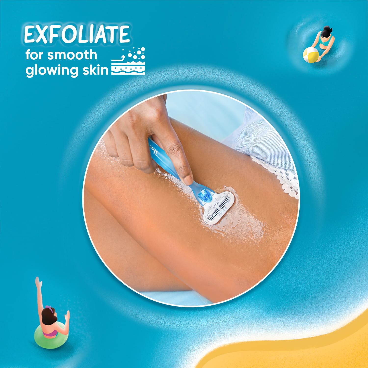 This Gillette Venus Razor features a skin-friendly design with an aloe vera moisture strip that helps the blade glide effortlessly over your skin. It reduces dryness and leaves your skin feeling soft, fresh, and hydrated after every use.