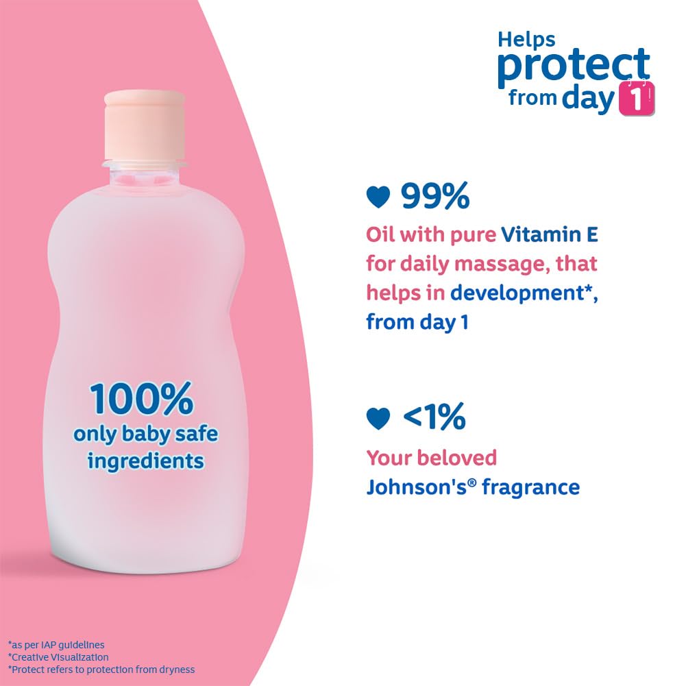 Johnson’s Baby Oil with Vitamin E 200ml | Non-Sticky Baby Massage Oil for Soft & Nourished Skin