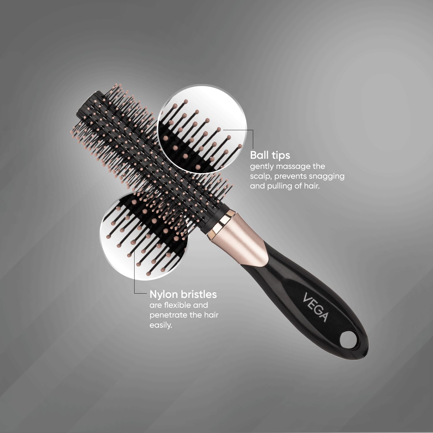 Vega Round Hair Brush (E34-RB) for Men & Women