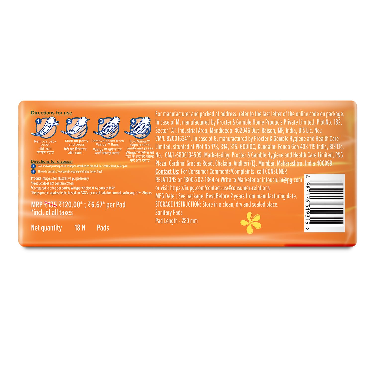 Whisper Choice Sanitary Pads with Wings for Women, XL, 18 Napkins (Pack of 1)