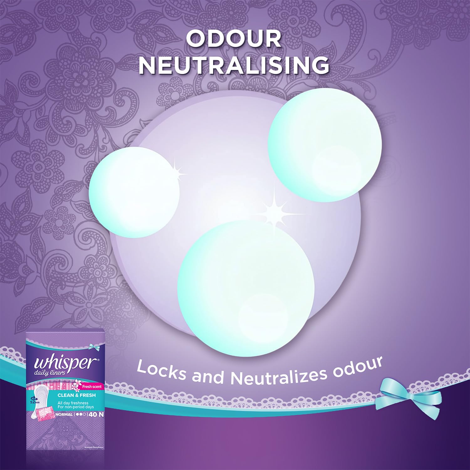 Stay confident and fresh all day with Whisper Clean & Fresh Daily Liners, specially crafted for everyday intimate hygiene and comfort. These soft and thin panty liners for women provide light protection against daily discharge, spotting, and sweat, helping you feel clean and dry wherever you go.