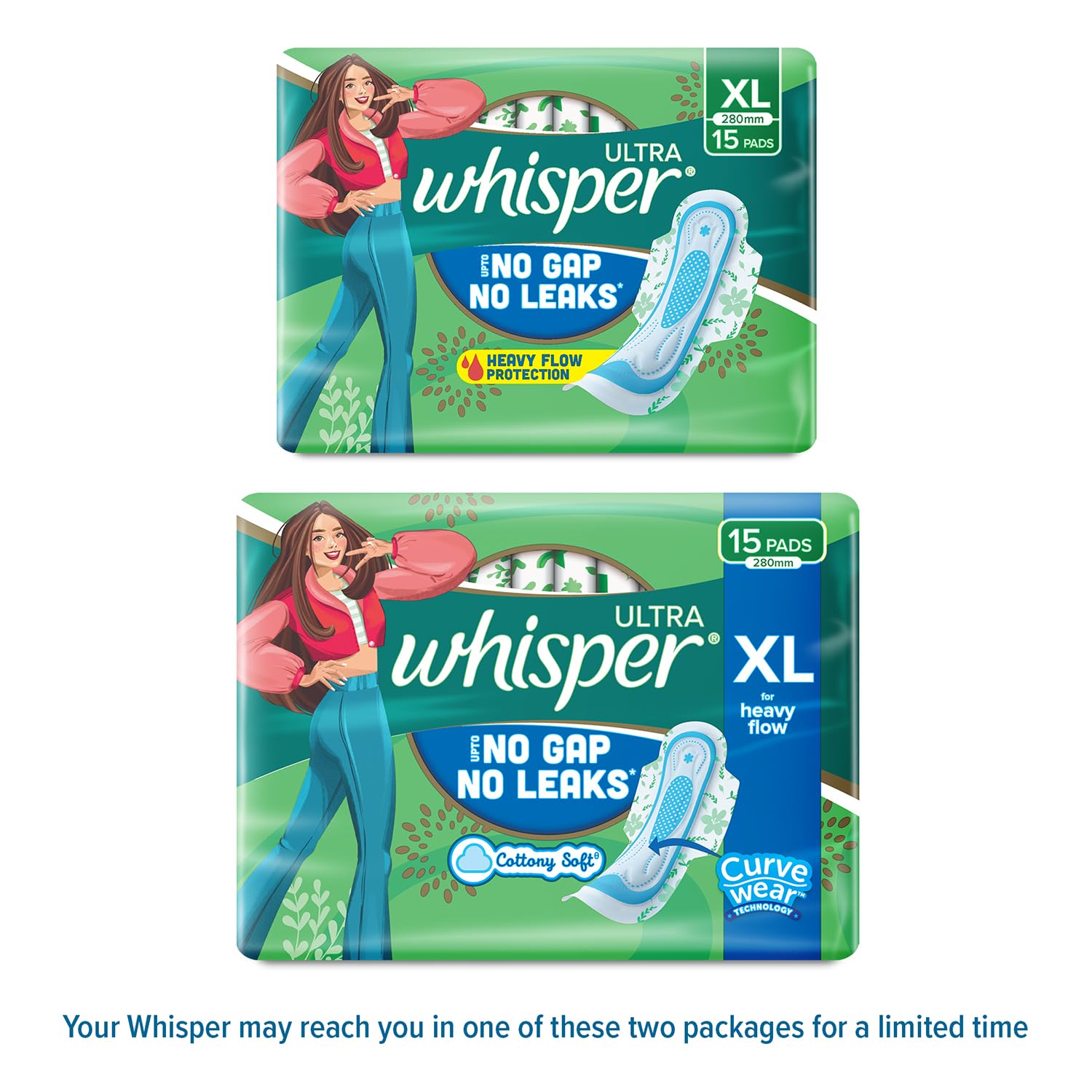 Whisper Ultra Clean Sanitary Pads for Women XL | Pack of 15 Napkins | Long Lasting Protection & Comfortable Fit
